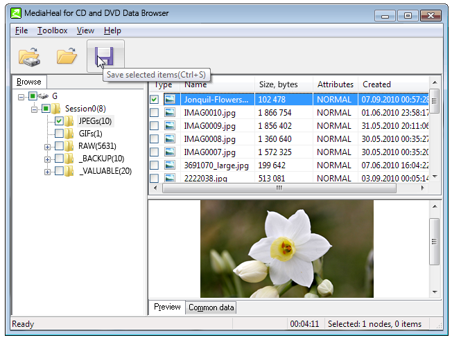 提示:MediaHeal for CD and DVD 数据浏览器可用作损坏和正常文件的预览和恢复。